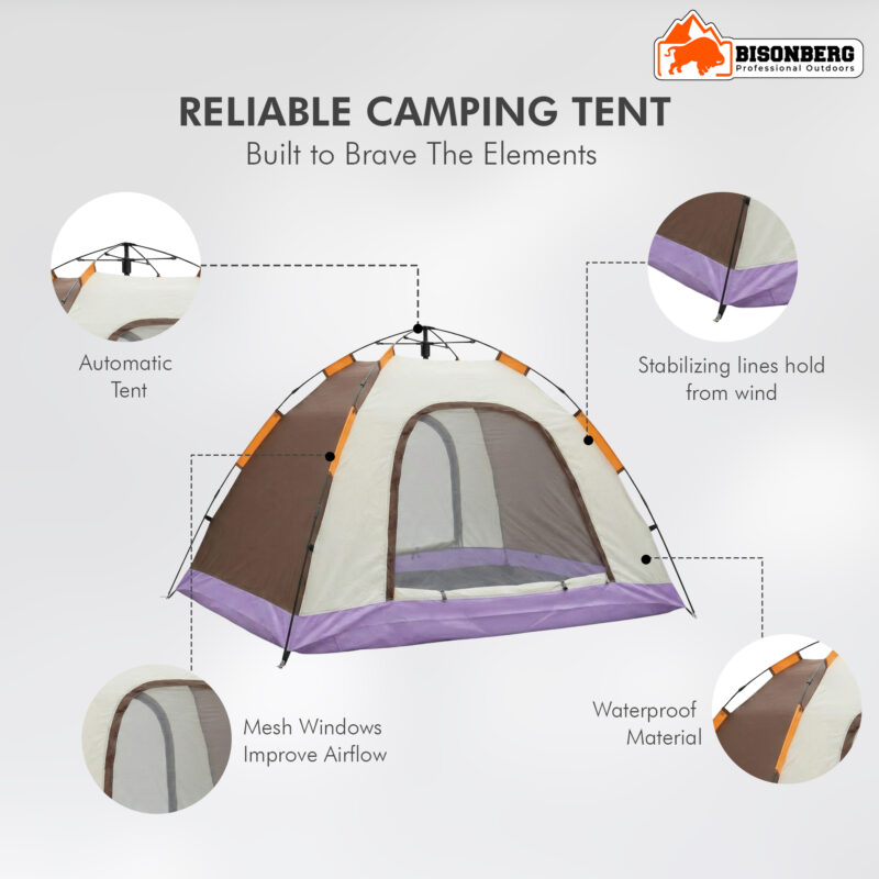 Bisonberg Premium Family Automatic Camping Tent with Canopy | Waterproof, Ventilated & Easy Setup Outdoor Tent