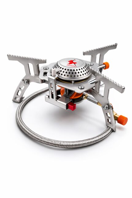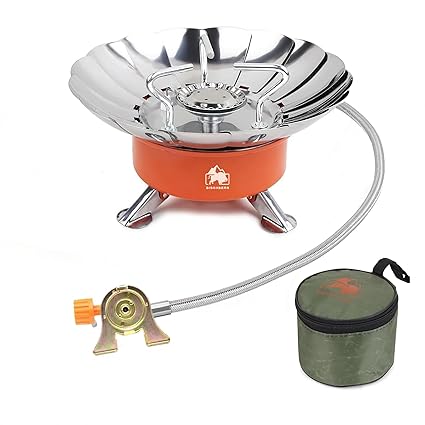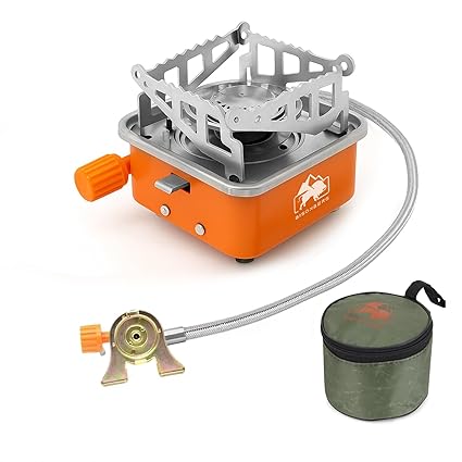 Bisonberg Portable Camping Gas Stove – Foldable Stainless Steel Backpacking Burner with Braided Hose | High Power Outdoor Cooking Stove for Trekking & Camping