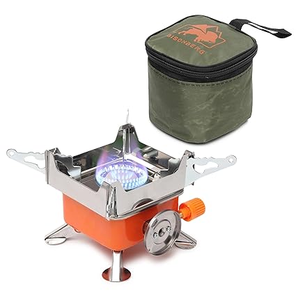 BISONBERG Stainless Steel Camp Gas Stove with Carrying Case for Camping Hiking Portable -Green Color