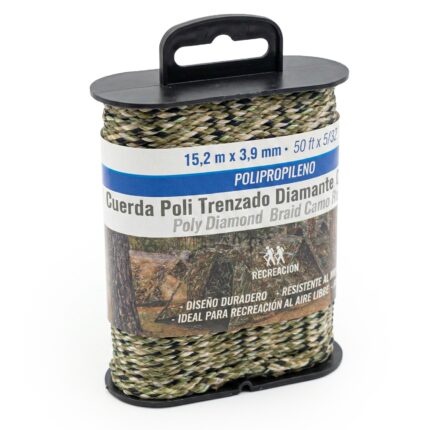 Poly Diamond Braided Polypropylene Rope 15.2m (50ft) x 3.9mm – Heavy-Duty Camo Utility Rope for Camping, Outdoor & Recreation