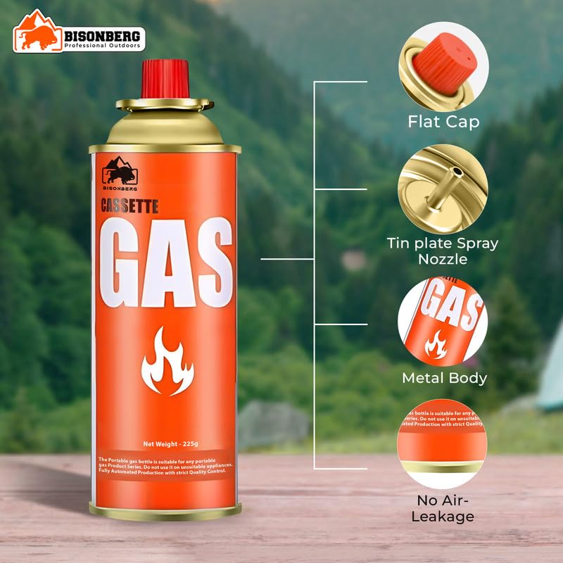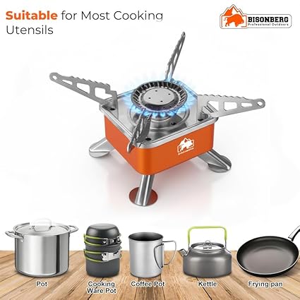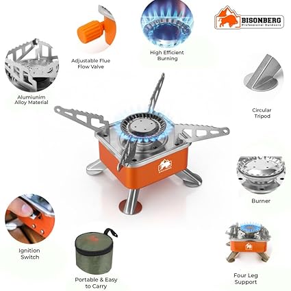 Bisonberg Portable Camping Gas Stove | Foldable Outdoor Mini Gas Burner with Adjustable Flame Control for Hiking, Backpacking, and Travel Cooking