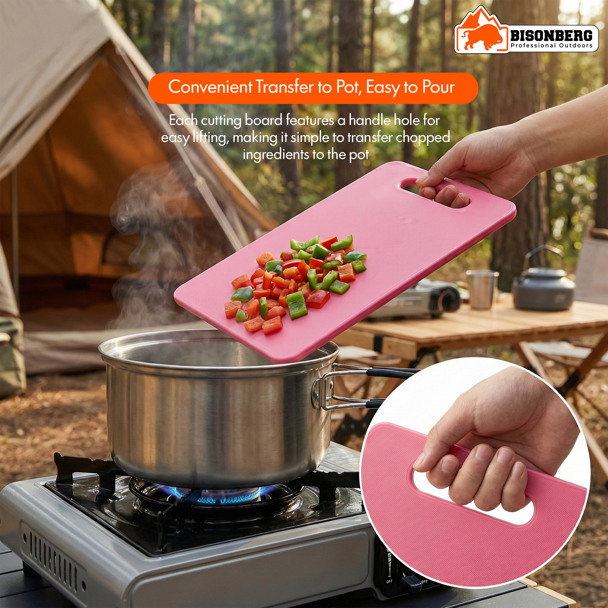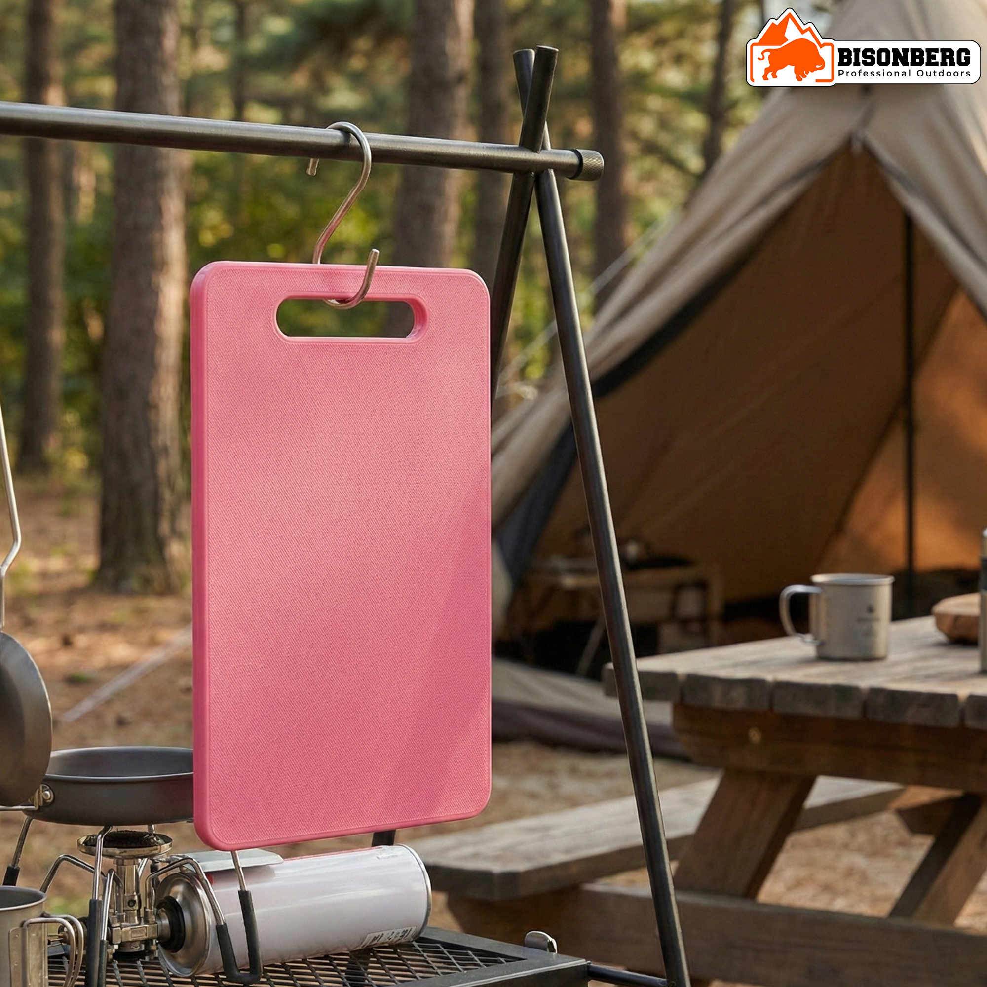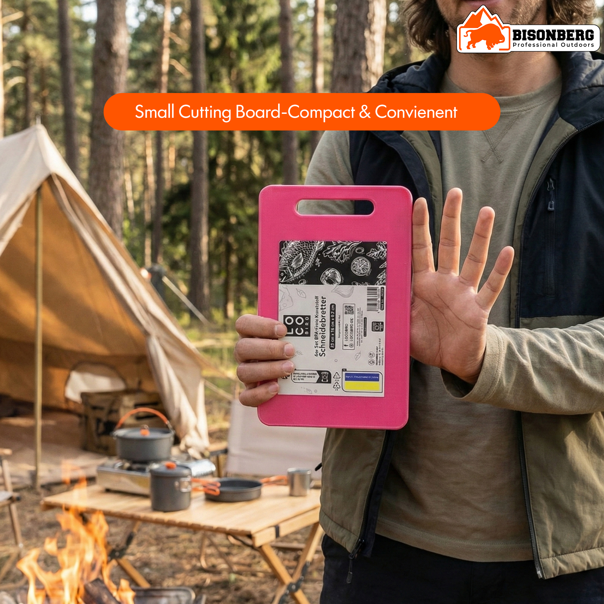 Bisonberg Compact Camping Cutting Board (25×16 cm) – Portable Outdoor Chopping Board with Handle