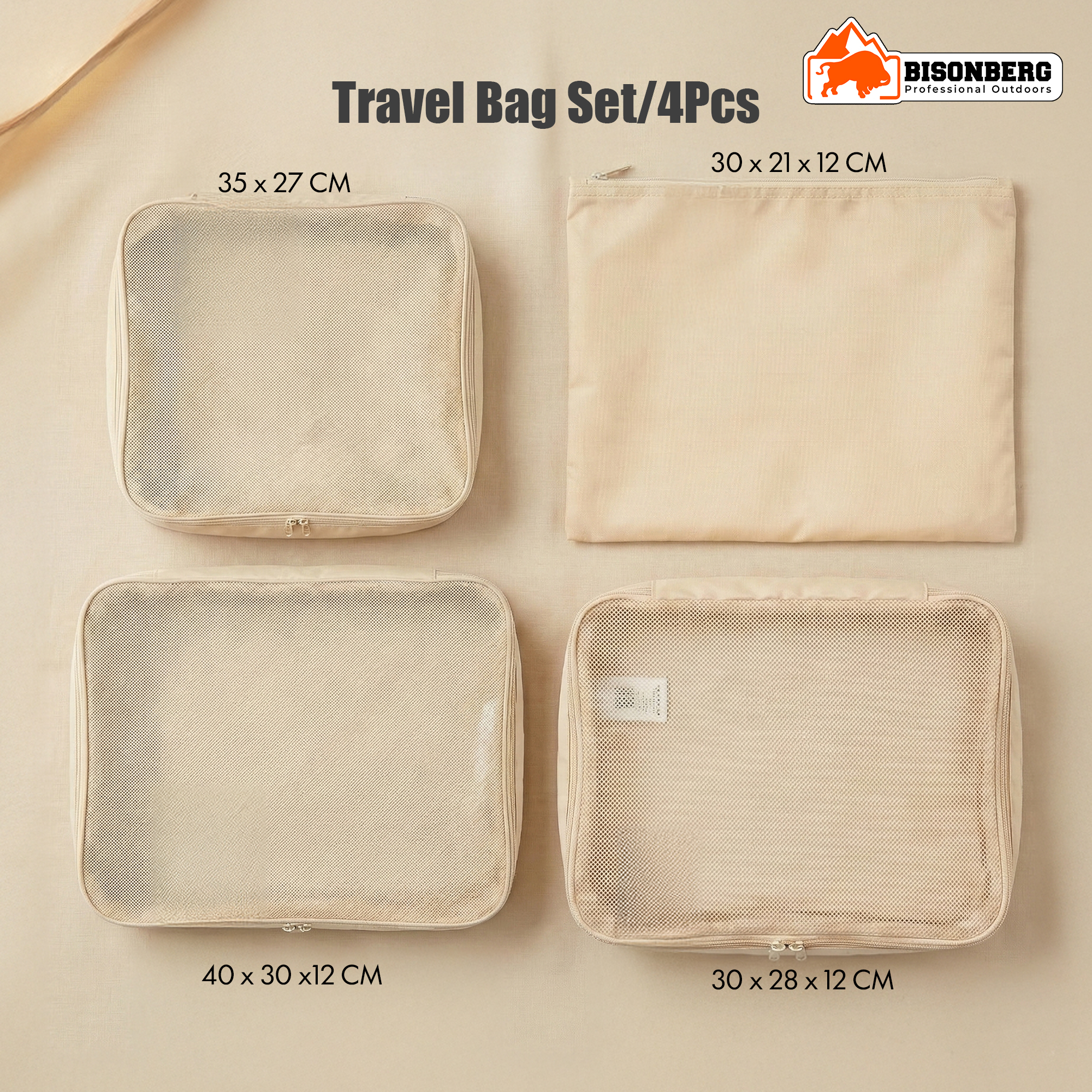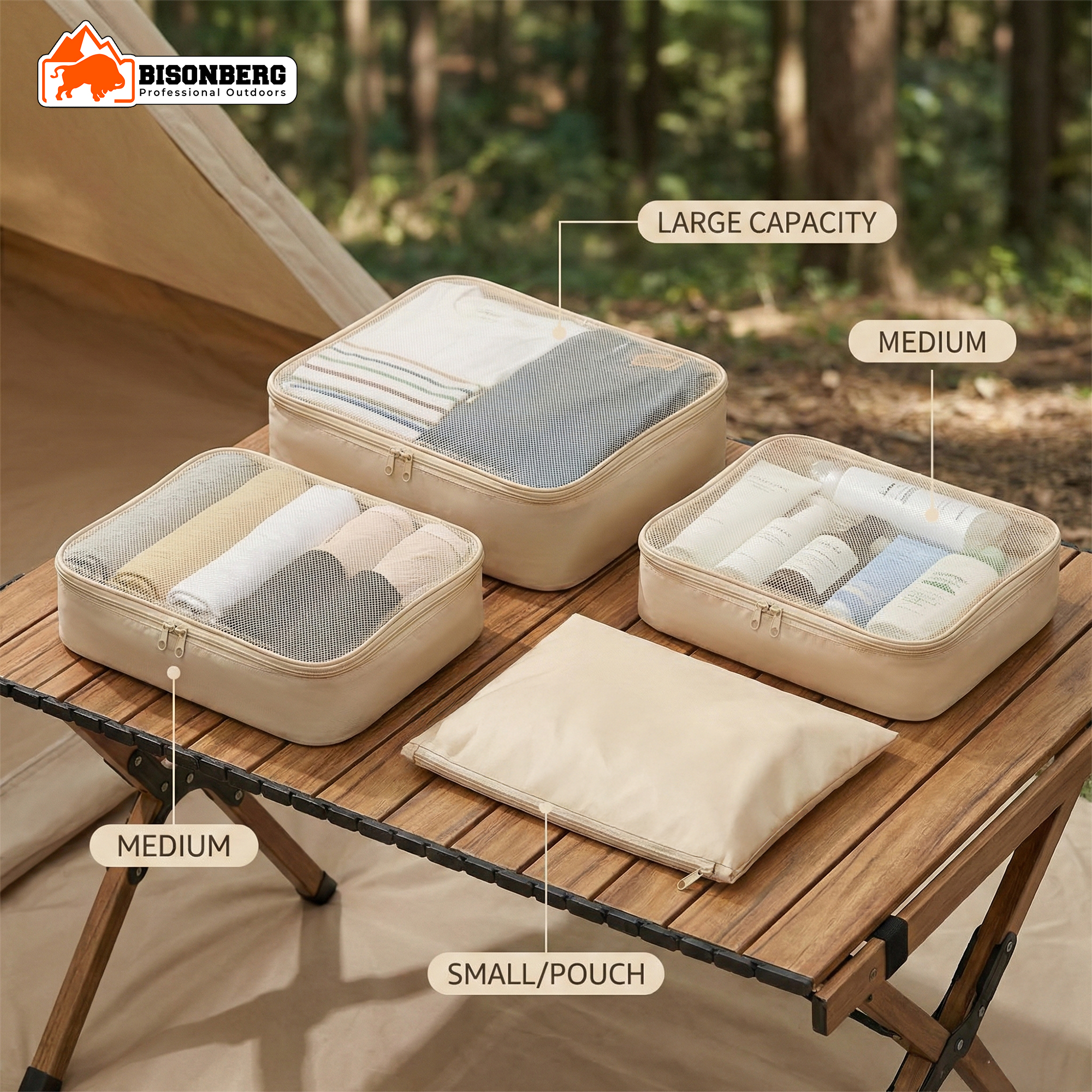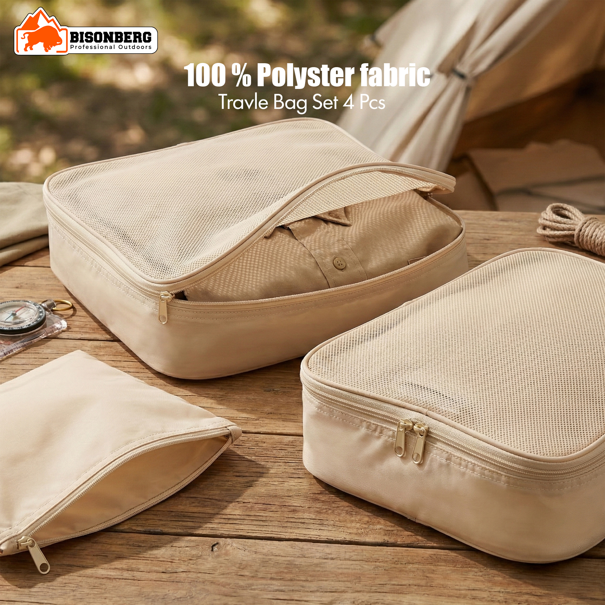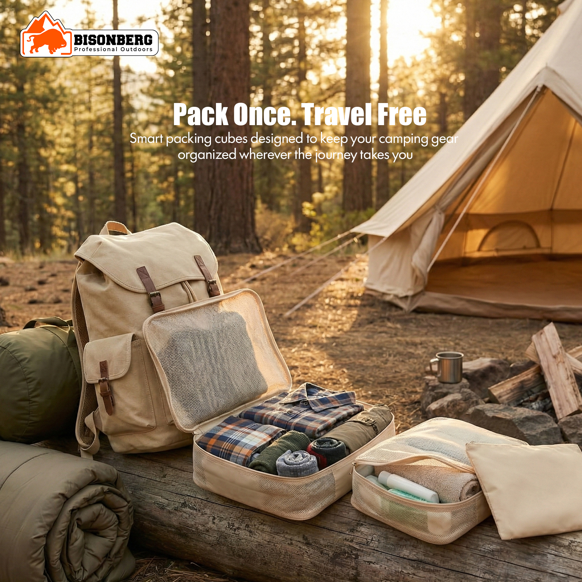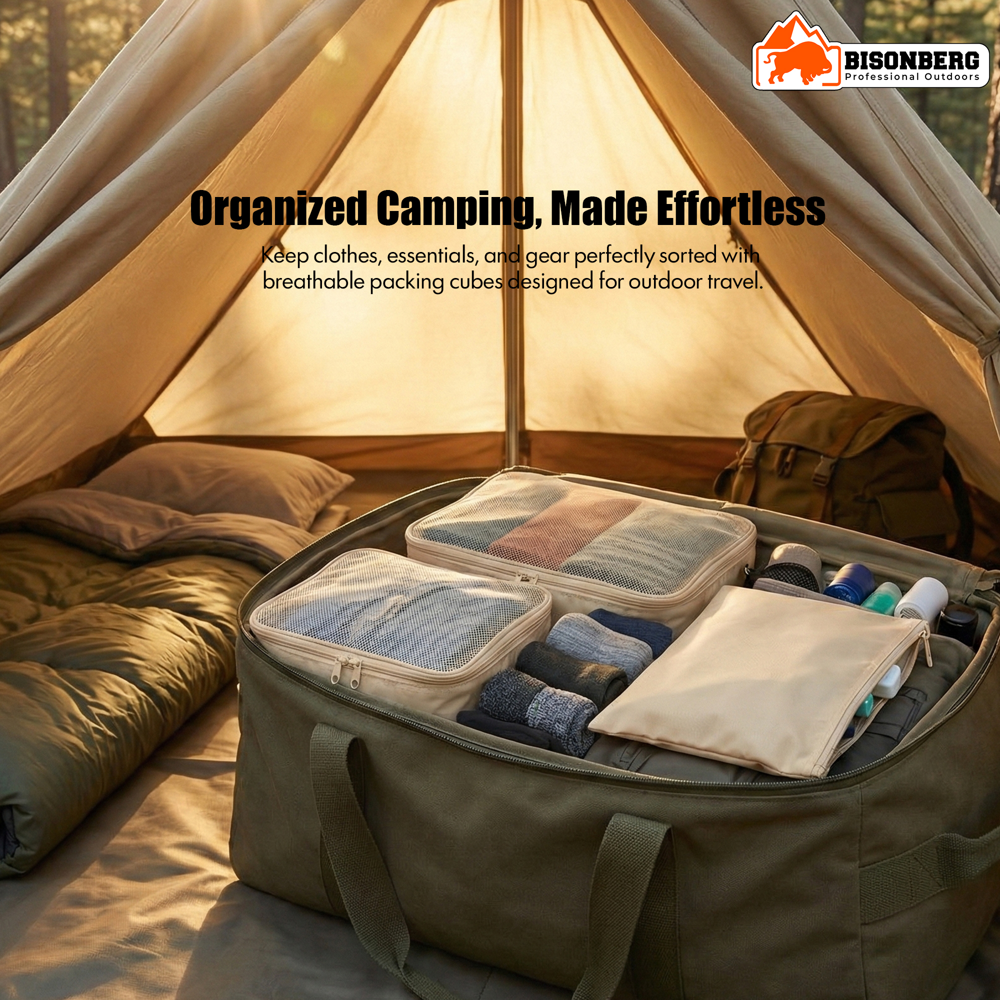Bisonberg Travel Packing Cubes Set of 4 – Breathable Mesh Organizer Bags for Camping & Travel