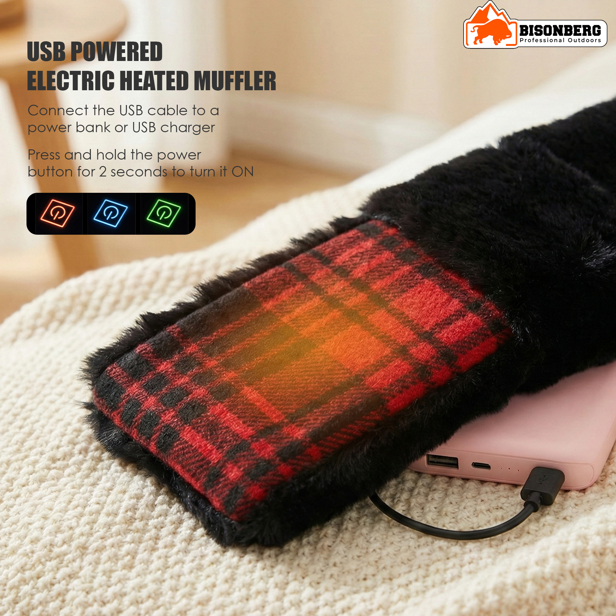 Bisonberg USB Powered Electric Heated Muffler Scarf for Winter | Soft Fur Lined | Adjustable Heat Levels | Ideal for Camping, Travel & Extreme Cold
