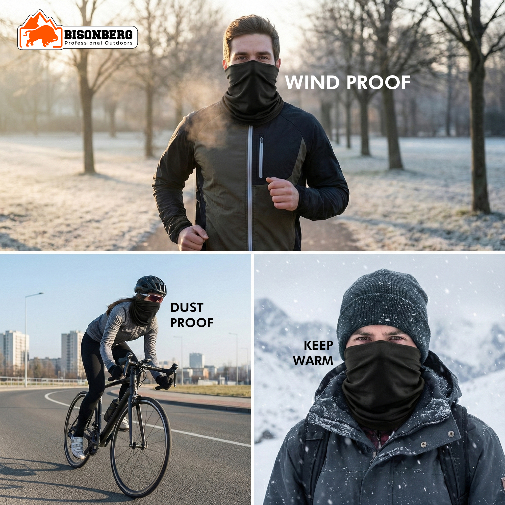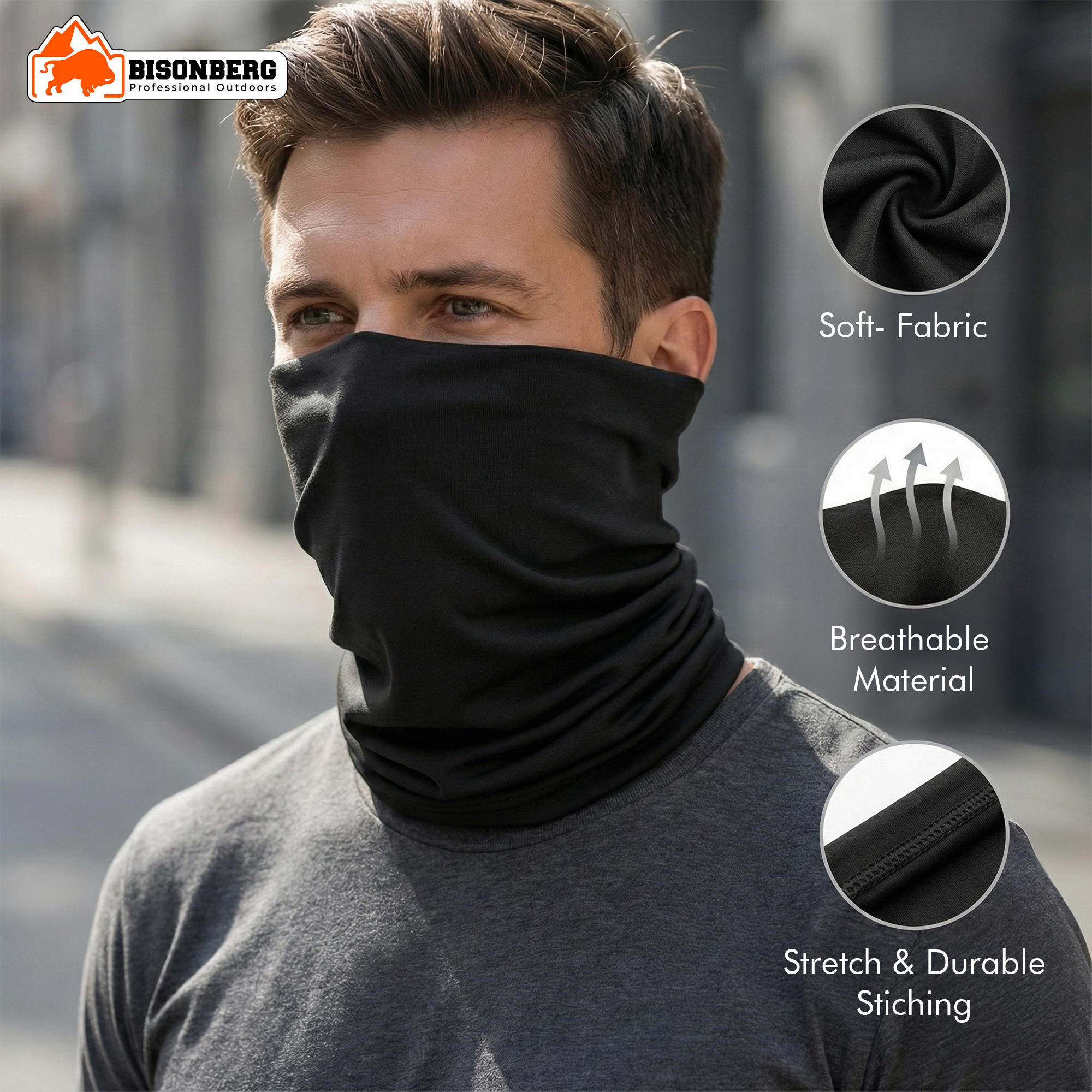 Black Neck Gaiter (Bandana) – Multifunctional Outdoor Face & Head Wrap