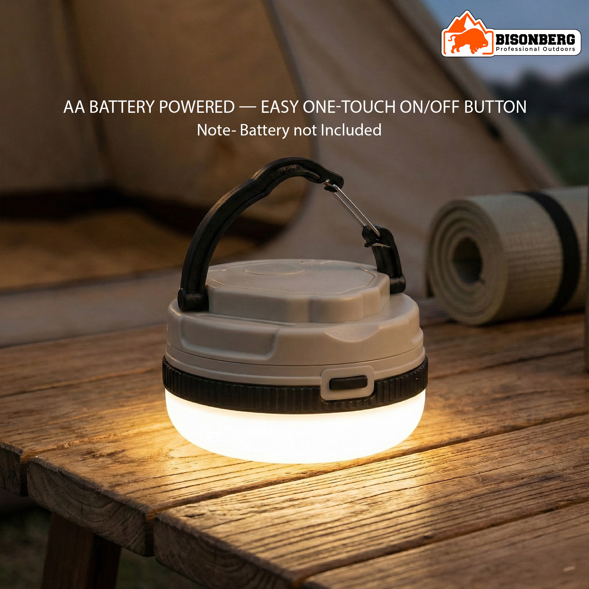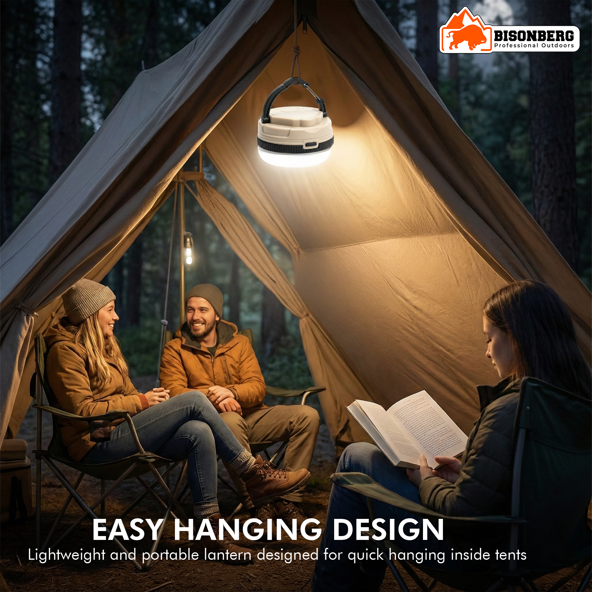 Bisonberg LED Camping Lantern – Portable Hanging Tent Light with 3 Modes (Battery Powered)