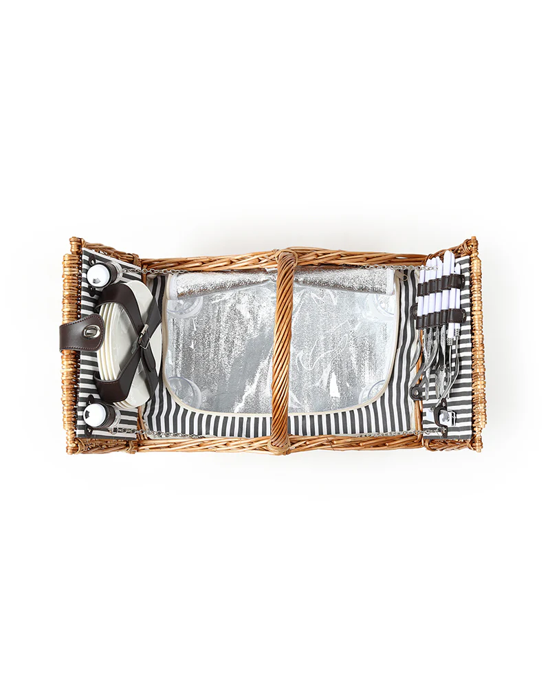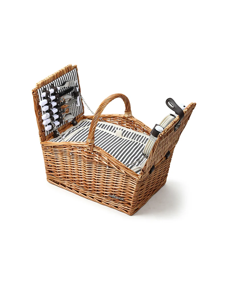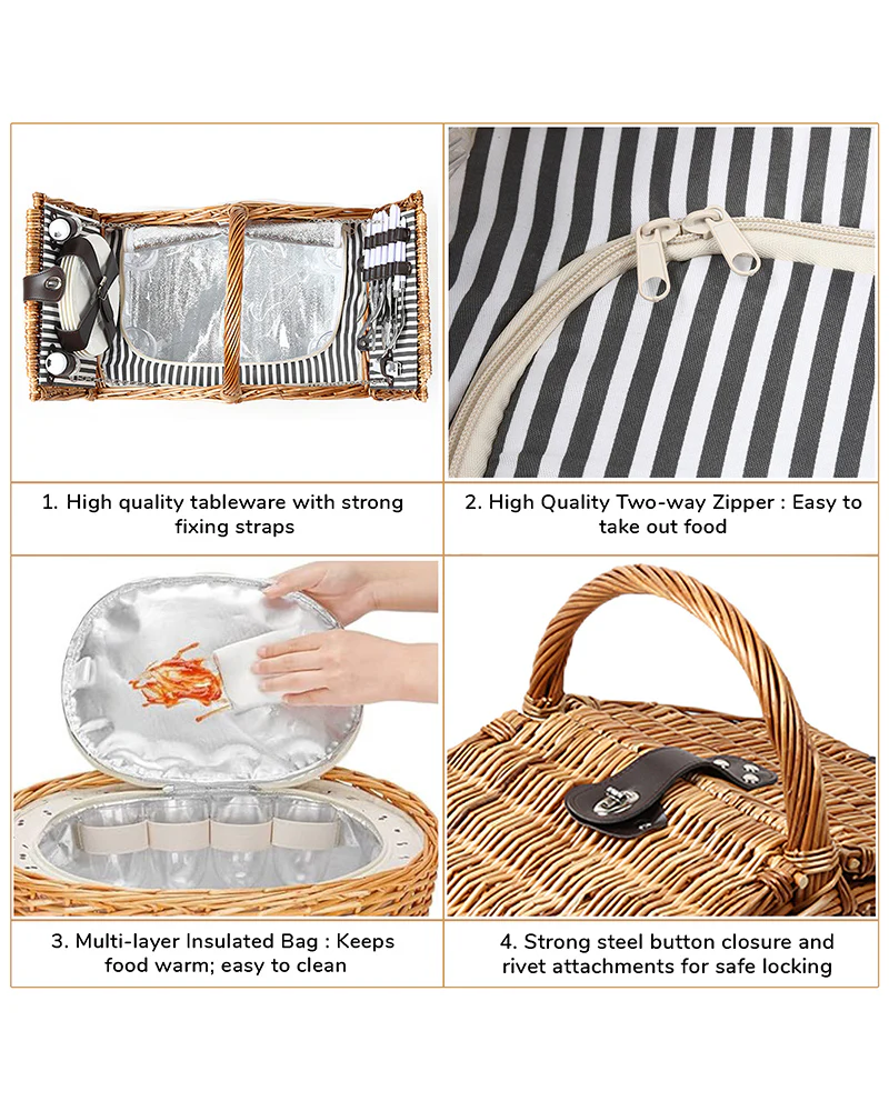 Complete Picnic Cutlery Set Included – Comes with neatly secured plates, cutlery, glasses, and accessories fixed inside the lid for organized and hassle-free picnics.