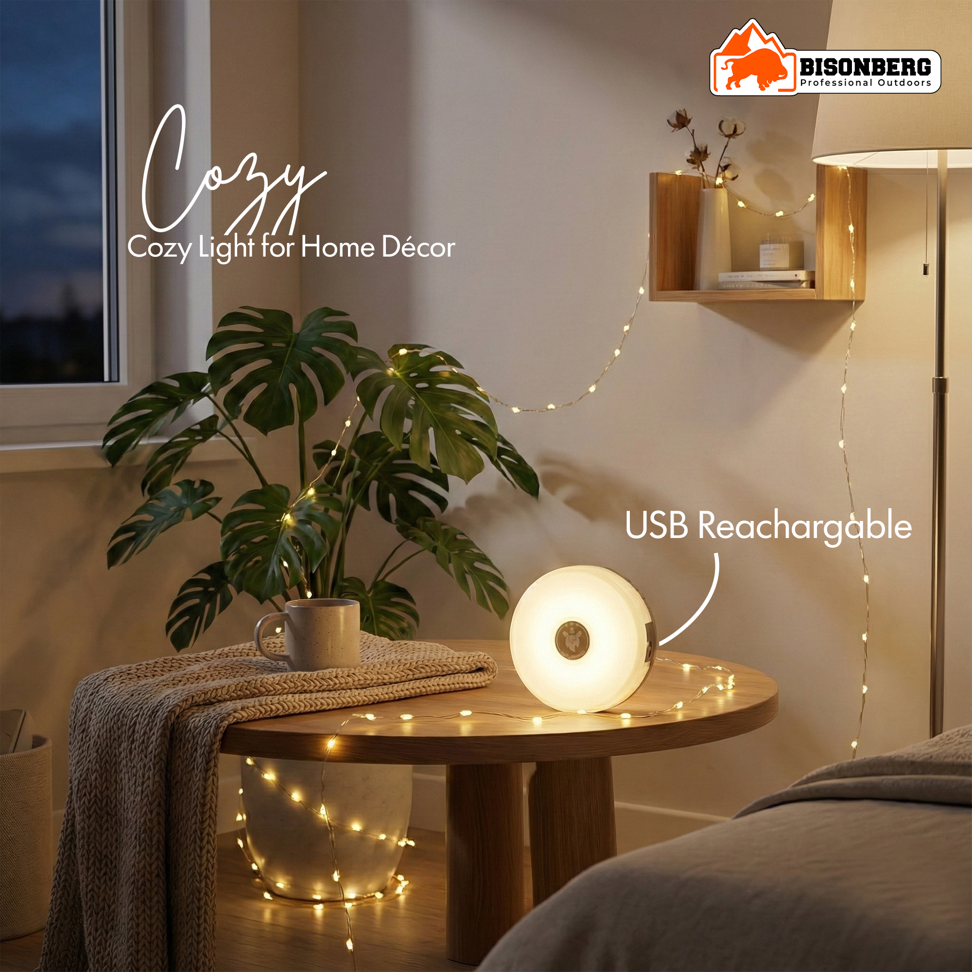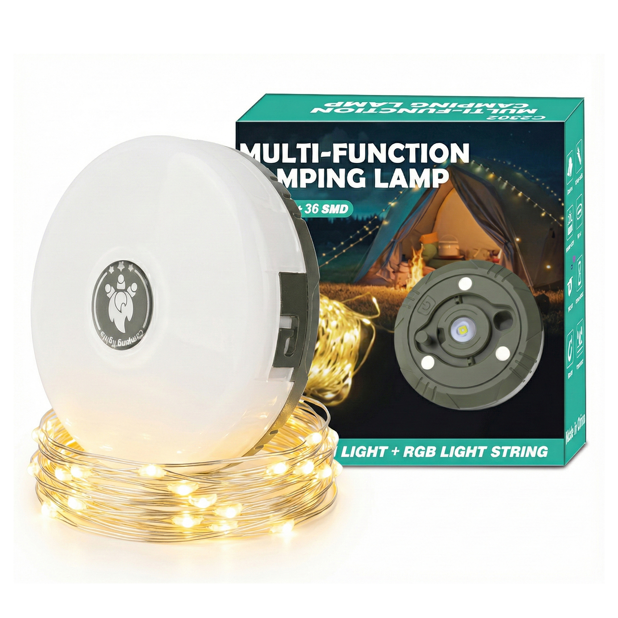• Features multiple lighting modes including bright white light and warm decorative string lights