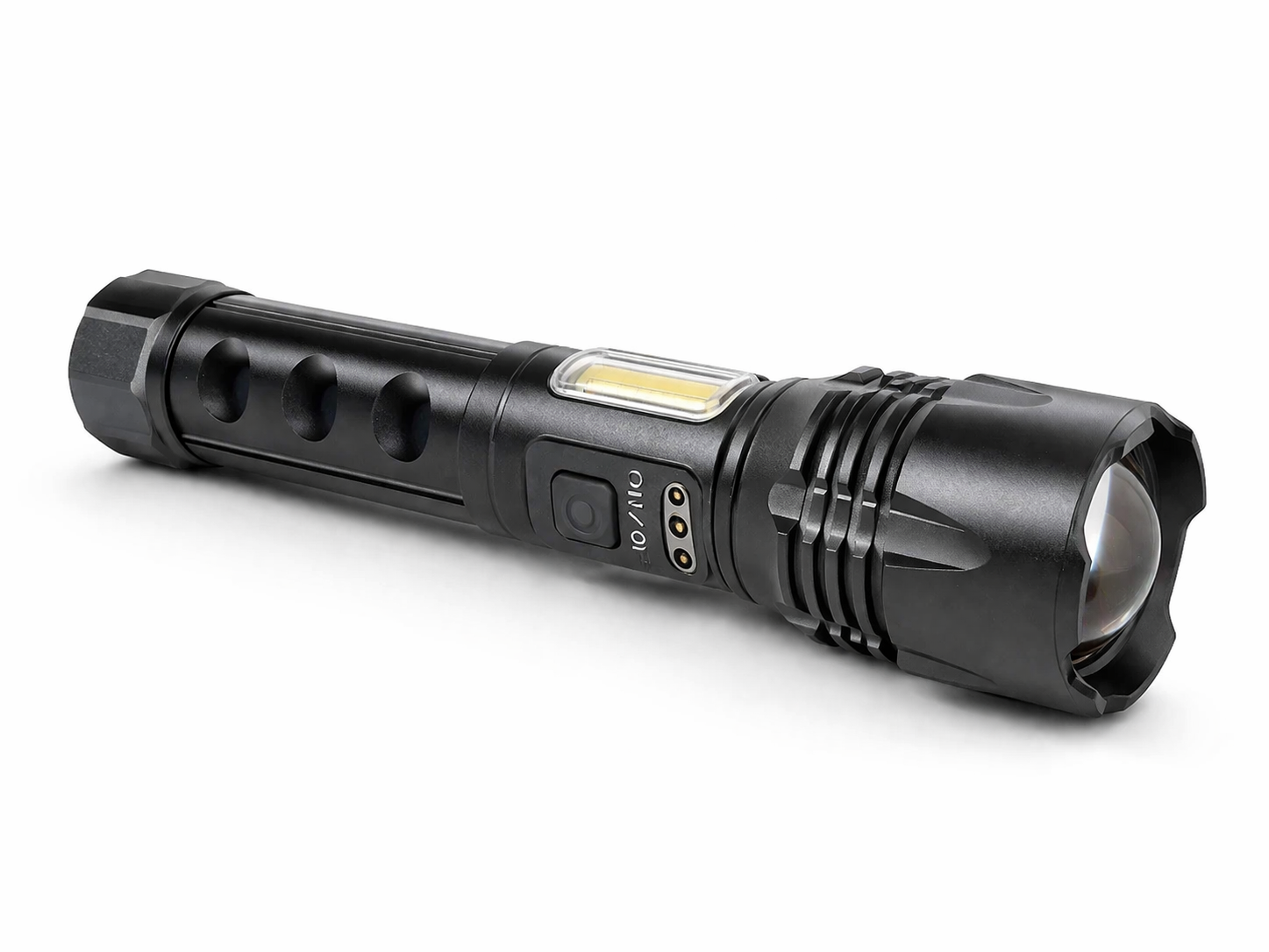 Multi-Function LED Flashlight with COB Strip Light & Power Indicator – Outdoor Torch
