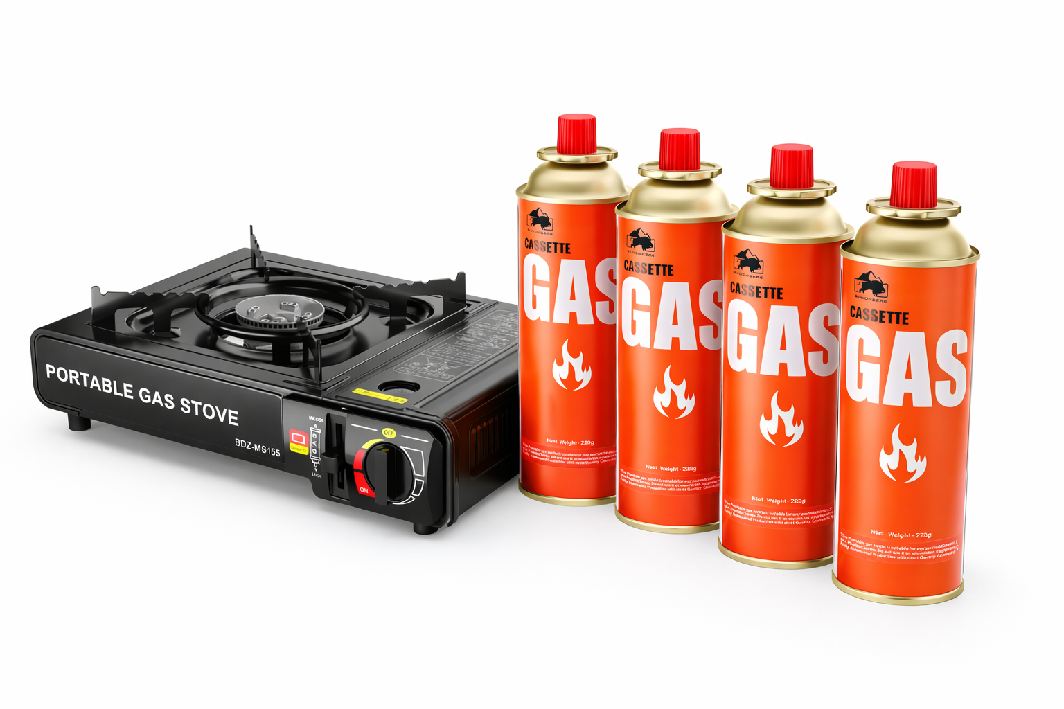🛢 4 Butane Gas Cartridges Included – High-quality cassette gas (225g each) ensures long cooking time during outdoor adventures.