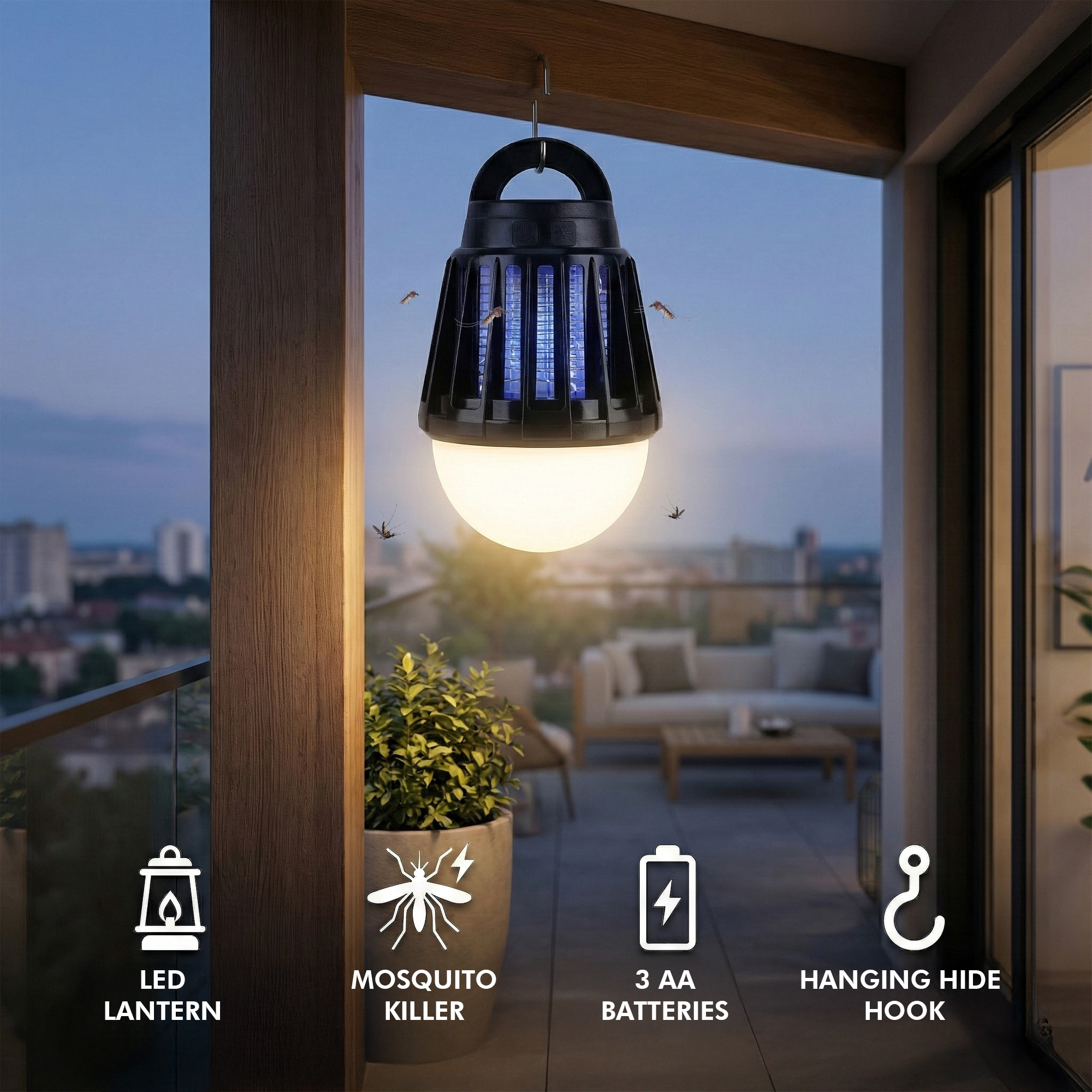 Rechargeable Camping Lantern with Mosquito Killer – 2-in-1 Bug Zapper Light