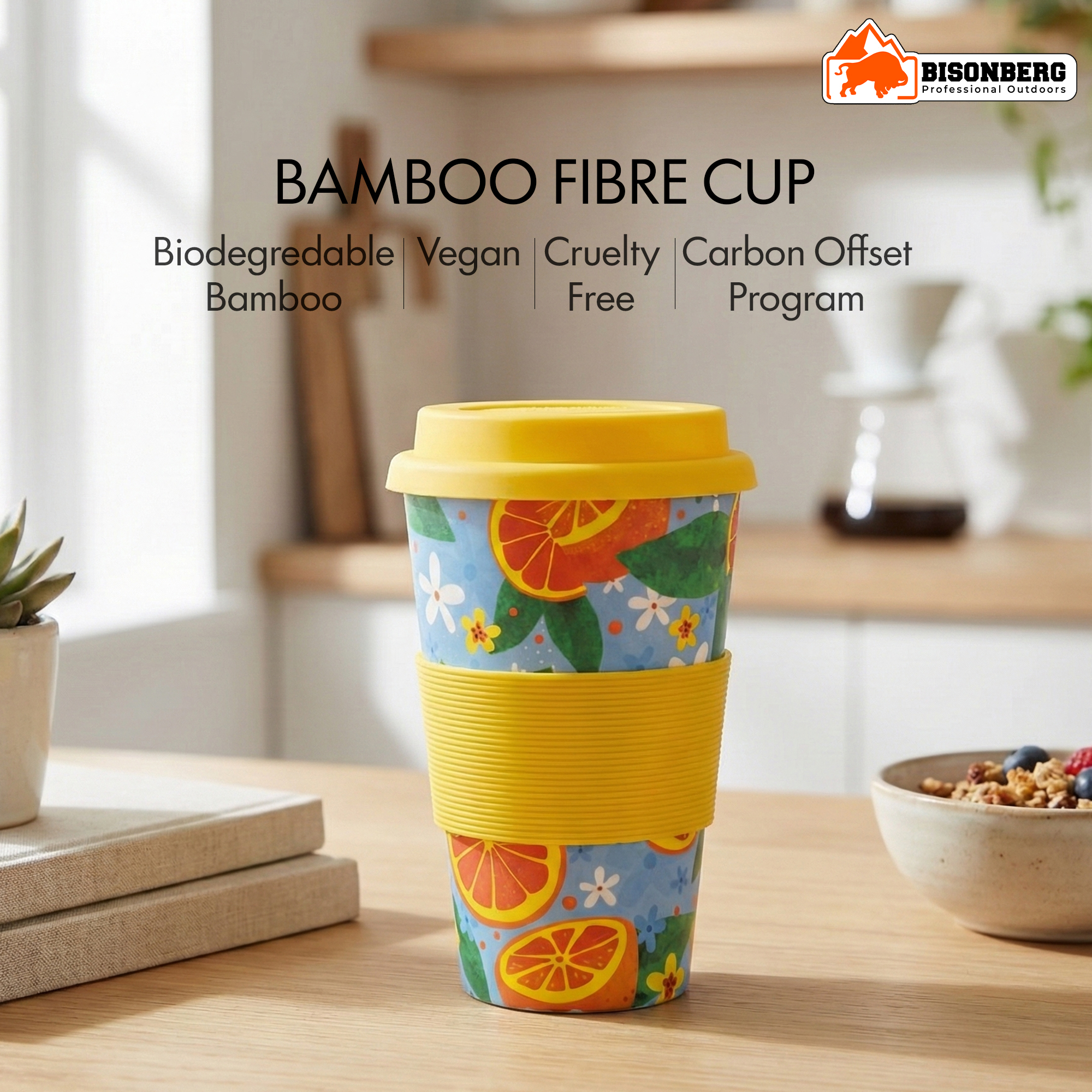 Eco-friendly bamboo fiber mug made from sustainable, biodegradable materials