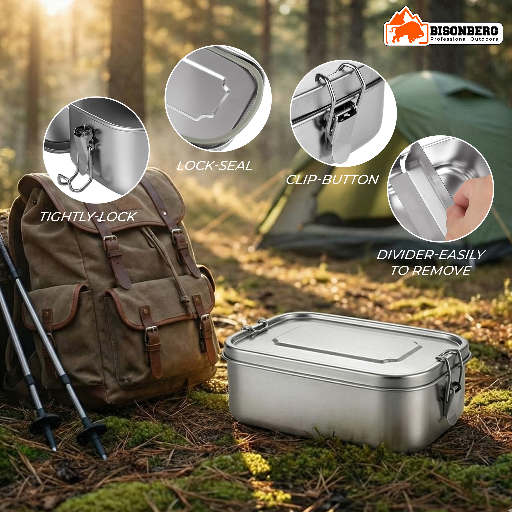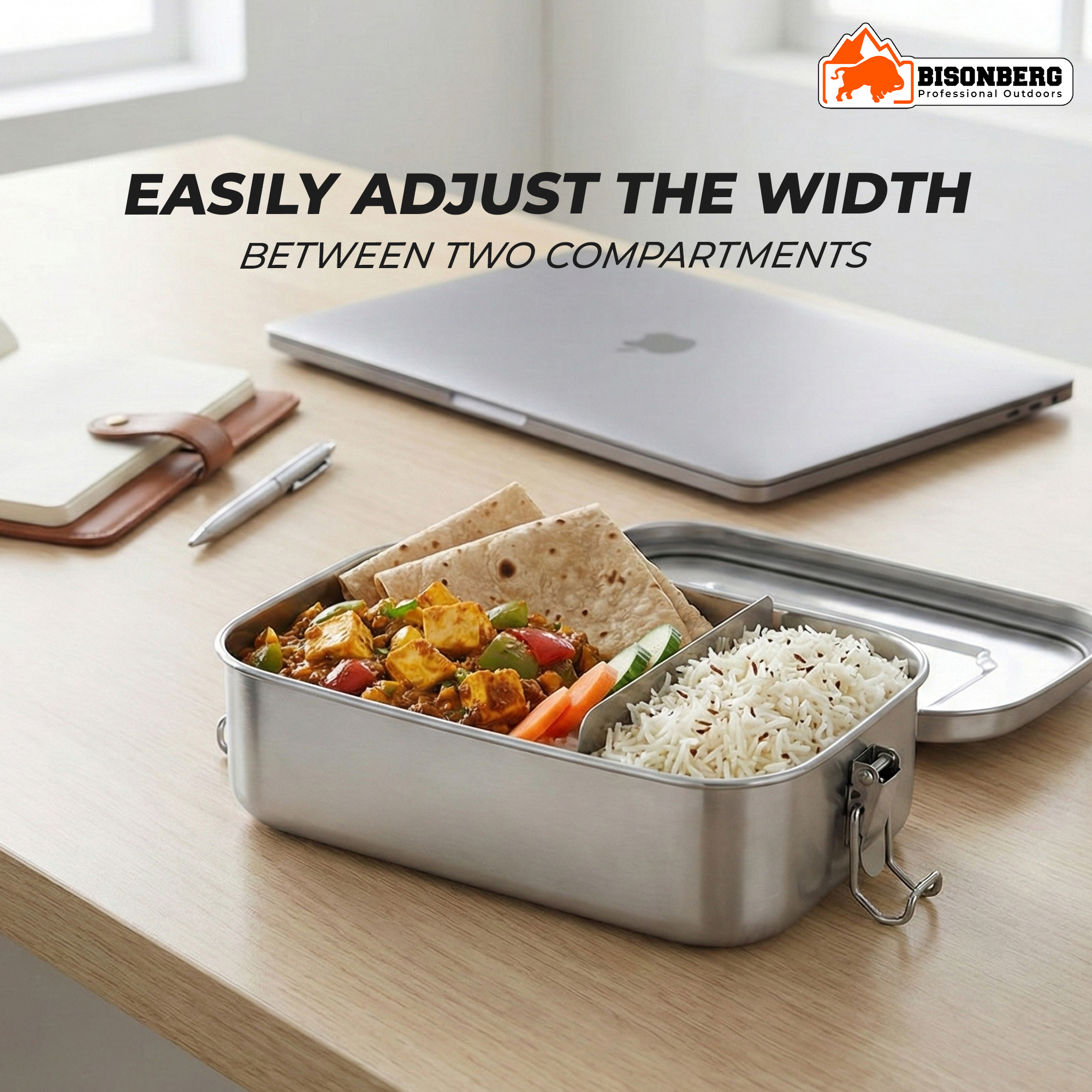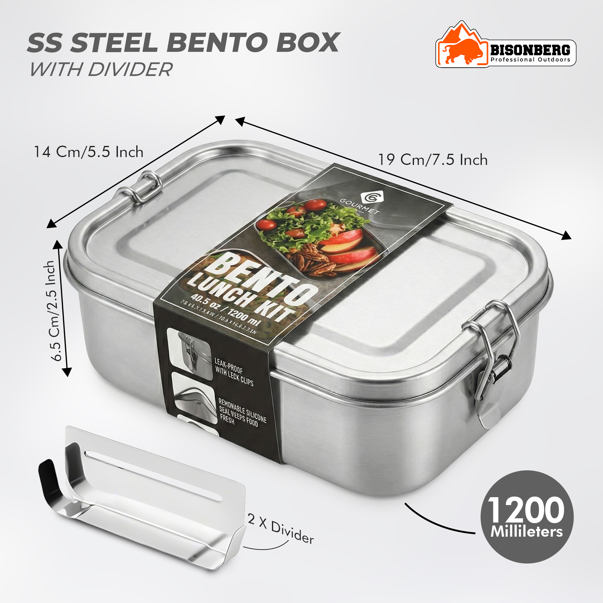 Stainless steel bento lunch box designed for healthy meal storage at work, school, travel, and outdoor use
