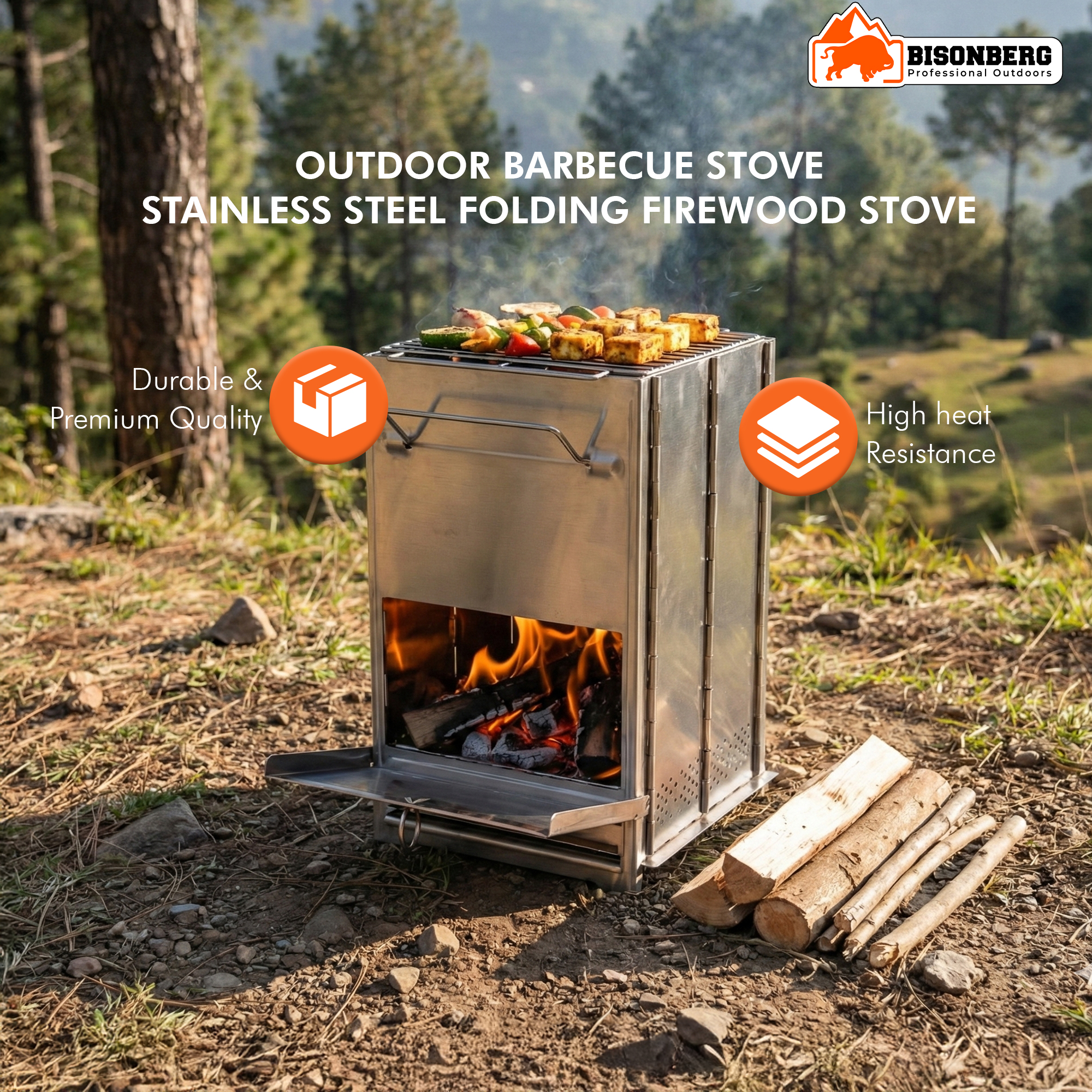 Stainless Steel Portable Camping Stove – Foldable Wood Burning Outdoor Cooker